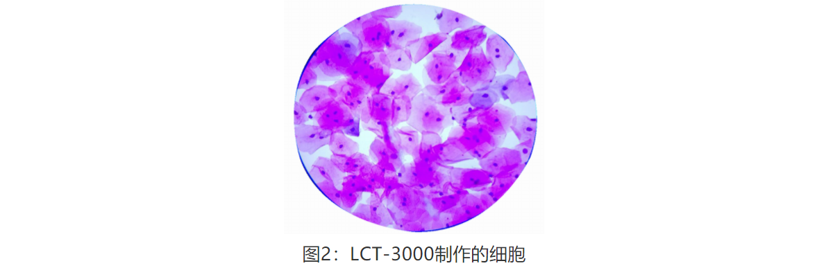 另一組膜式機(jī)的操作,采用LCT-2000膜式機(jī),保存樣本3-5小時(shí)后進(jìn)行,將保存液瓶中的過(guò)濾筒去除,安放好膜筒和相對(duì)應(yīng)的玻片,開始制片。重復(fù)操作后,待制片結(jié)束使用95%酒精進(jìn)行固定,最后亦用巴氏染色并封片固定,進(jìn)行篩查。