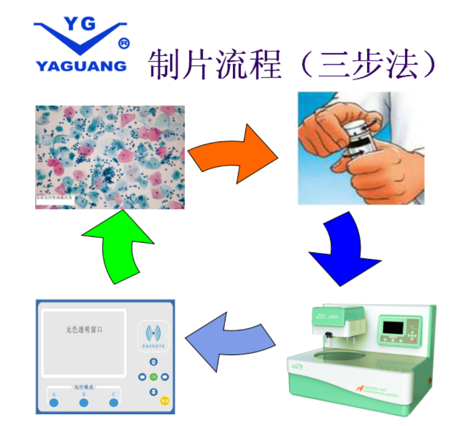 【概要描述】? 液基薄層細(xì)胞學(xué)檢測(cè)技術(shù)(Thin-Cytologic Test TCT),液基薄層細(xì)胞制片檢查系統(tǒng)處理技術(shù)誕生于1991年美國(guó)等國(guó)家,率先應(yīng)用于婦科細(xì)胞學(xué)檢查,國(guó)內(nèi)從2001年開始作液基細(xì)胞學(xué)篩查宮頸癌的研究,使該項(xiàng)技術(shù)得到迅速發(fā)展,被稱之為一場(chǎng)細(xì)胞學(xué)制片技術(shù)的革命。TCT從根本上解決了常規(guī)脫落細(xì)胞制片假陰性率高、丟失細(xì)胞率高(80%)和涂片質(zhì)量差等技術(shù)難題,使宮頸癌的陽(yáng)性檢出率達(dá)95%以上,為脫落細(xì)胞學(xué)診斷作出了重大貢獻(xiàn)。目前,它已成為篩查宮頸癌最好的推薦方法之一,為宮頸癌的早期診斷和治療提供了非常明確的診斷依據(jù),是一項(xiàng)非常值得推廣應(yīng)用的臨床檢驗(yàn)技術(shù)。 早在 20 世紀(jì) 60~70 年代 ,就有不少歐、美醫(yī)療單位將濾膜手工制片用于診斷細(xì)胞學(xué) , 并且對(duì)膜的性質(zhì)描述也和當(dāng)前過(guò)濾膜基本相同。目前所使用的幾種制片裝置和方法并非有什么特別要求而難控制,只是開發(fā)商把這一過(guò)程機(jī)械化了。液基薄層細(xì)胞制片技術(shù)是指薄層制片自動(dòng)裝置制備細(xì)胞學(xué)標(biāo)本 ( 涂片或印片) 的技術(shù)。 這些裝置研 發(fā)于 20 世紀(jì)末期 , 主要有兩家美國(guó)公司的產(chǎn)品,即Thin Prep 薄層制片技術(shù)裝置 (又稱 TCT) 和 Auto Cyte PREP 液基細(xì)胞薄層制片技術(shù)裝置 (又稱 LCT) 。分別于1997年和1998年開始投產(chǎn) 。TCT 和 LCT 技術(shù) 均是液基薄層細(xì)胞技術(shù)的細(xì)胞學(xué)制片裝置( 制片 機(jī)) ,如同病理組織切片機(jī)一樣,只是制片的機(jī)器。 但是它們的價(jià)格昂貴,在國(guó)內(nèi)也只能是一些大醫(yī)院才能開展該項(xiàng)目,在基層醫(yī)院的推廣則比較緩慢。后來(lái)國(guó)內(nèi)的一些廠家研發(fā)了離心法、沉降法等制片機(jī),并自主研發(fā)了細(xì)胞保存液,大大地降低了薄層液基細(xì)胞的制片成本,從而使該項(xiàng)技術(shù)易于被廣大基層醫(yī)院所接受并且進(jìn)行推廣使用。 亞光LCT-3000液基薄層細(xì)胞制片機(jī)介紹 LCT-3000液基薄層細(xì)胞制片機(jī)是孝感市亞光醫(yī)用電子技術(shù)有限公司結(jié)合先進(jìn)的液基薄層細(xì)胞制片術(shù),自主研發(fā)的設(shè)備,并且擁有完整的知識(shí)產(chǎn)權(quán),具有7項(xiàng)國(guó)家專利保護(hù),在去年也已申請(qǐng)國(guó)外專利技術(shù)。 作為能在趨于同質(zhì)化的市場(chǎng)中脫穎而出的產(chǎn)品,同時(shí)能獲得創(chuàng)新技術(shù)獎(jiǎng),LCT-3000確實(shí)有它的獨(dú)到之處。 一、無(wú)需多臺(tái)設(shè)備,占用空間少。 二、全自動(dòng)制片過(guò)程,減少人工環(huán)節(jié),降低使用者接觸標(biāo)本的時(shí)間,更加衛(wèi)生環(huán)保。 三、每次制片可選1-8片,平均每小時(shí)制片60片。 四、可重復(fù)制片,根據(jù)科研和臨床需求可為同一標(biāo)本做多張質(zhì)量相同的薄片 五、細(xì)胞量充足且范圍廣,制片完成后的面積為直徑20毫米的圓形,充分滿足5000到12000的細(xì)胞量要求。 六、可同時(shí)作用于婦科樣本和非婦科樣本(例如:痰液、胸腹水、尿液等等)。 圖1:LCT-3000 普通婦科的宮頸細(xì)胞制片 測(cè)試材料 測(cè)試隨機(jī)選取了合作醫(yī)院從2018年3月到2018年4月200例體檢病例作為對(duì)象。 TCT篩查200例,采用LCT-3000液基薄層細(xì)胞制片機(jī),年齡18-60歲,平均(34.2±5.5)歲,孕次1-3次,平均(1.3±0.5)次; 病例納入標(biāo)準(zhǔn):(1)未合并肝、腎等臟器疾病;(2)無(wú)宮頸手術(shù)史;(3)檢查時(shí)患者不處在月經(jīng)期或妊娠期; 對(duì)比組:同上200例相同樣本,采用傳統(tǒng)膜式制片機(jī)。 具體操作如下:準(zhǔn)備篩查所需儀器,包括無(wú)菌棉球、用于保存細(xì)胞溶液的塑料容器、細(xì)胞過(guò)濾膜、陰道擴(kuò)張器等。首先在陰道中置入陰道擴(kuò)張器。使用無(wú)菌棉球?qū)m頸表面的黏液、分泌物等擦去,一次性宮頸采樣拭子通過(guò)宮頸入宮頸管左旋刷5圈右旋刷5圈刷取宮頸脫落細(xì)胞。再將拭子置于盛有PreservCyt液的瓶中進(jìn)行刷洗,將宮頸脫落細(xì)胞浸泡并保存。 保存樣本3-5小時(shí)后進(jìn)行制片,直接將保存液放入設(shè)備內(nèi),再將制片架對(duì)應(yīng)放好,然后設(shè)置制片模式。本次測(cè)試我們選擇以“程序一”,“B”模式進(jìn)行操作,LCT-3000運(yùn)行5分鐘后制片結(jié)束,重復(fù)操作,待制片結(jié)束后使用95%酒精進(jìn)行固定,最后采用巴氏染色并封片固定,進(jìn)行篩查。 另一組膜式機(jī)的操作,采用LCT-2000膜式機(jī),保存樣本3-5小時(shí)后進(jìn)行,將保存液瓶中的過(guò)濾筒去除,安放好膜筒和相對(duì)應(yīng)的玻片,開始制片。重復(fù)操作后,待制片結(jié)束使用95%酒精進(jìn)行固定,最后亦用巴氏染色并封片固定,進(jìn)行篩查。 觀察指標(biāo) (1)患者的最終診斷結(jié)果均以組織病理活檢為準(zhǔn),活檢陽(yáng)性診斷標(biāo)準(zhǔn)為CIN Ⅰ-Ⅲ、SCC; (2)所有患者的篩查結(jié)果均使用TBS分級(jí)系統(tǒng):意義尚未明確的非典型磷狀上皮細(xì)胞(ASC)、有高度病變傾向的非典型磷狀上皮細(xì)胞(ASC-H)、低程度病變的磷狀上皮